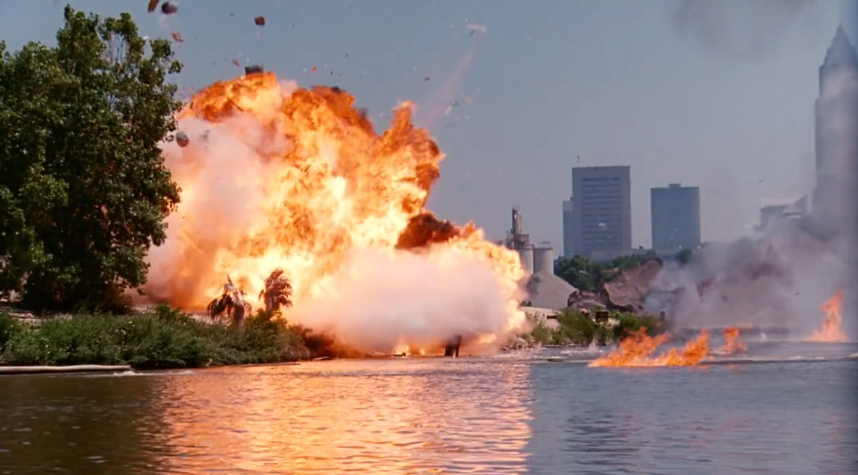 I don't know exactly what went wrong with DOUBLE DRAGON. The screenshots above look great, because this movie looks great. If you haven't sat through this boring mess of a film, you might be surprised to read all that and then hear me tell you that this movie is a soulless slog. How can it be?? It's got everything that a mid-90s martial arts action film could possibly want, and I didn't even mention that halfway through the movie there's a boat chase with a VERY respectable 'splosion: