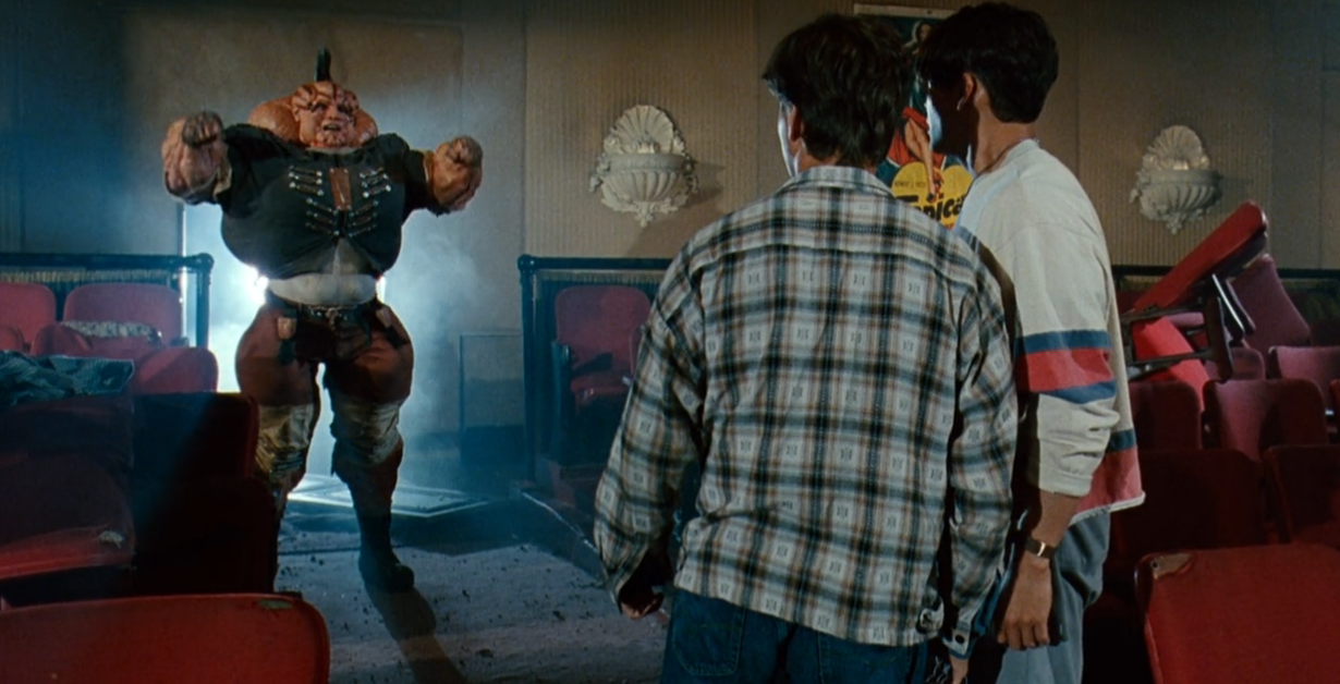 The special effects in DOUBLE DRAGON are surprisingly good. The wobbly phasing/shadow-attack effects look good for the time and are still charming in 2026. The prosthetics for Abobo are impressive and frightening, if rather rubbery. The sets all look truly excellent: some really good stuff in here that equal the highest-budget Cannon films. The matte paintings are imaginative, the costumes distinct, the lighting and color all effective and attractive.