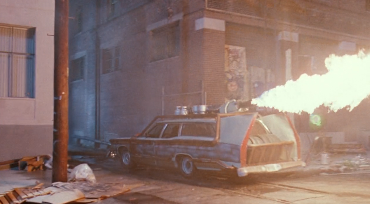 After the Lee brothers leave the kumite with (their mom?) Satori, their drive home is ruined by a trap run by a local gang. The boys have to hit the afterburner on their legally-distinct Ghostbusters Car to escape--