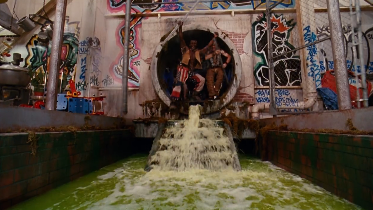 I can't help but be cheered up by all these brightly-dressed dancers popping through this sewer set to kick some ass in a nonlethal PG-13 manner.
