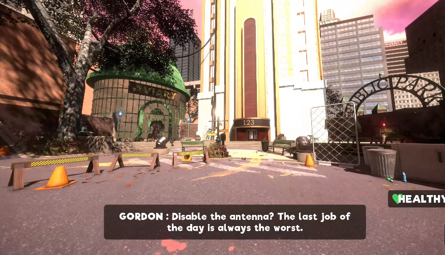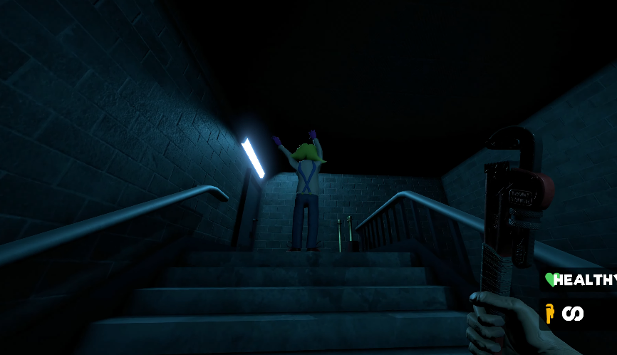 My Friendly Neighborhood is a first-person survival horror adventure game in the classic mode: In alternate-universe 1993, Gordon, a tired, hairy-armed, no-nonsense fella from the Bronx, is sent to the abandoned City Network Hotel in the heart of the grimy, dark City, to shut off a mysteriously-activated TV signal. The TV tower hasn't been used for a decade and there's no reason it should be suddenly broadcasting episodes of a long-cancelled children's puppet show. Gordon's boss dispatches him to do one simple task: get to the top of the City Network building and shut off that glitched signal.