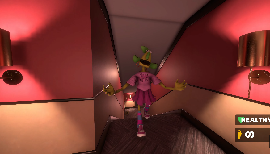 At some point we find out that the bird monster is not just a monster. Her name is Pearl. From the initial perspective of pure blank terror at hearing the floor-shaking footsteps of a huge beast running to crush you into jelly, we pull back slightly and reassess. Is she a puppet character? Could she talk?
